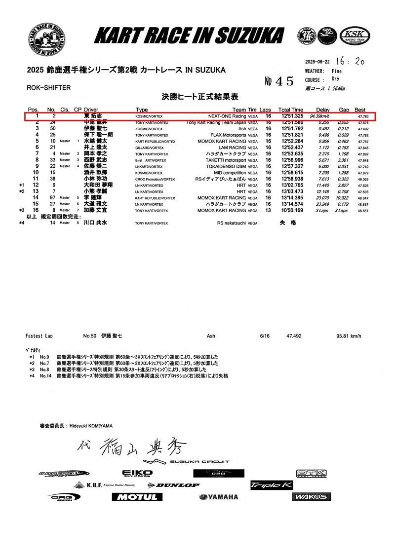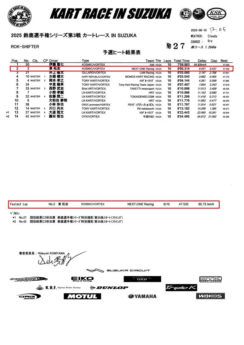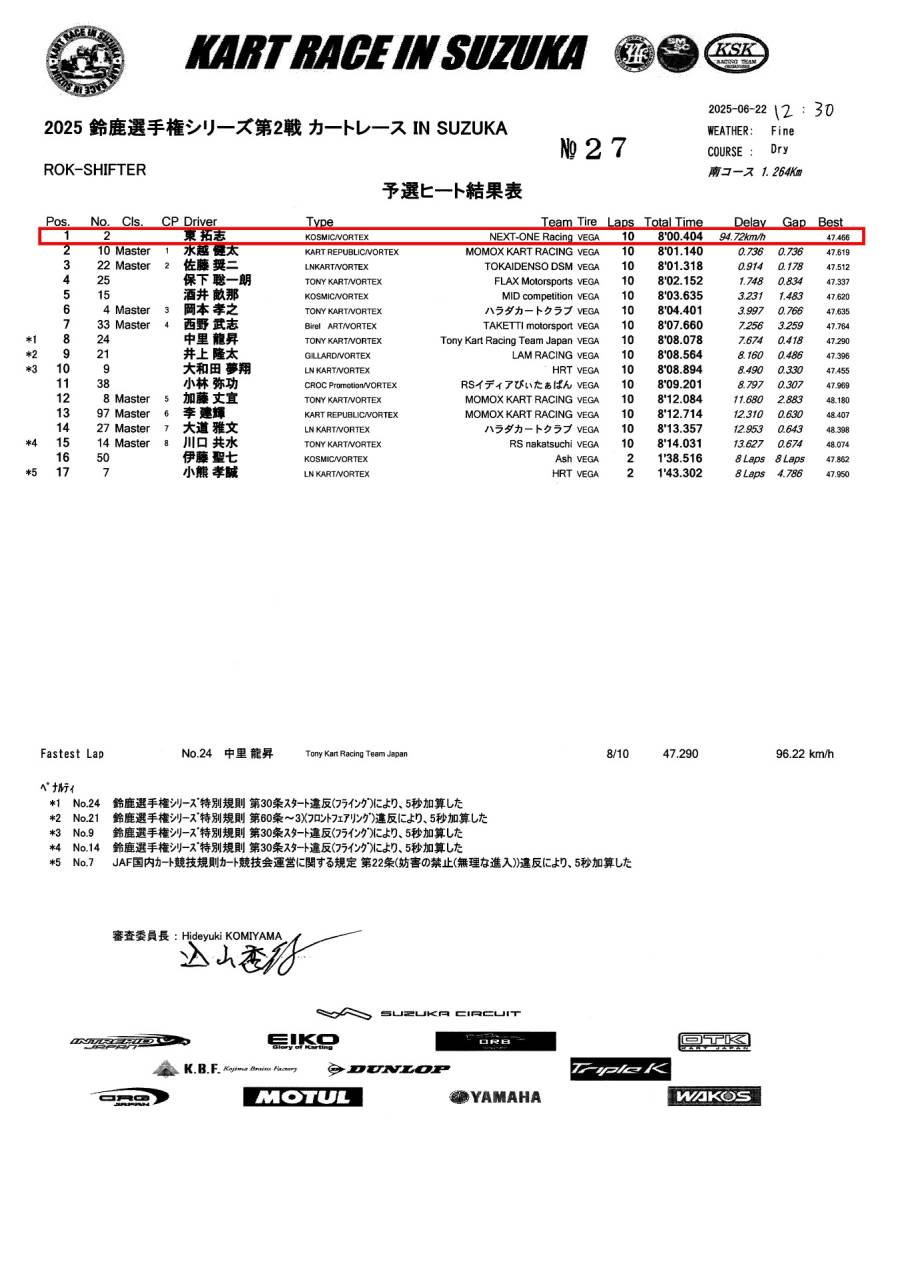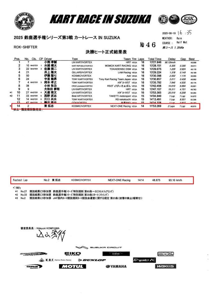 NEXT-ONE Racing が参戦した KART RACE IN SUZUKA 2025、ROK-SHIFTERクラスの公式レースレポート。